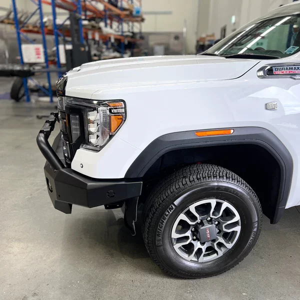 To suit GMC Sierra 2500/3500. Manufactured locally in Australia, supporting Aussie jobs and the local economy. Setup with Stedi cube fog lights and an integrated Stedi light bar.